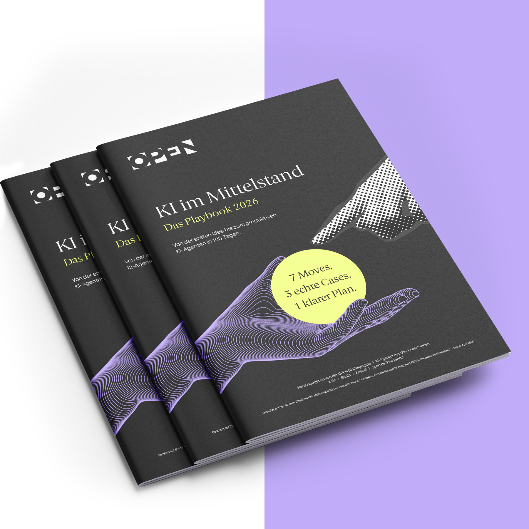 Die meisten Unternehmen verstehen das Potenzial von KI. Trotzdem kommen sie nicht vom Experiment zum Ergebnis. Das OPEN Playbook liefert den konkreten Fahrplan, von der ersten Analyse bis zum produktiven KI-Agenten in 100 Tagen.